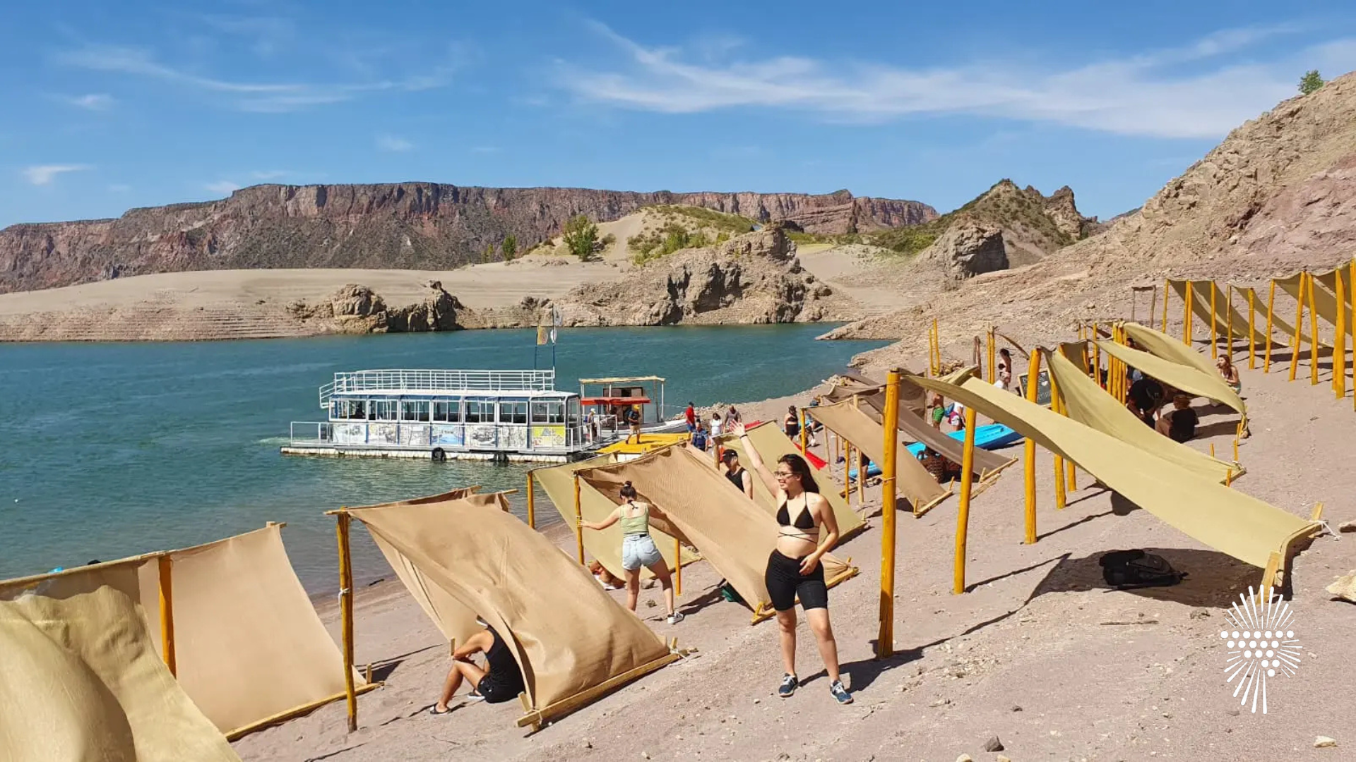 A solo 35 km de la ciudad, en pleno corazón del Cañón del Atuel, se encuentran las famosas Playas del Cañón, un verdadero paraíso escondido. Las aguas del embalse Valle Grande brillan cristalinas y calmas, bordeadas por pequeñas playas de arena fina a las que solo se accede en embarcación.