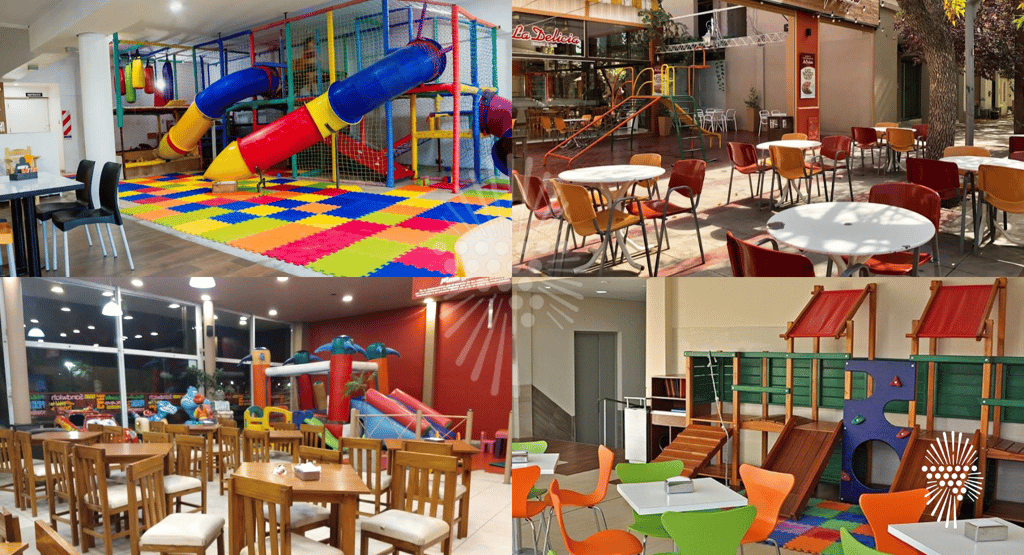 📍 Plaza Basti: Cafetería con plaza de juegos cerrada, inflables y un sector cubierto ideal para días fríos o lluviosos.