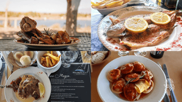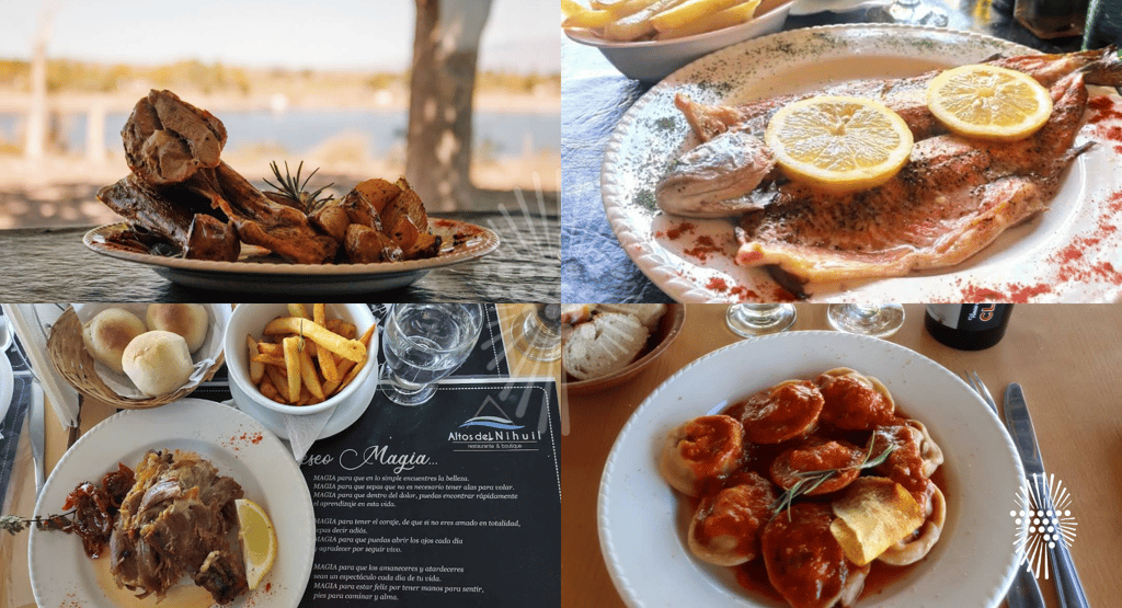 Aunque las opciones gastronómicas son acotadas, la experiencia es completamente auténtica. Los paradores y casas de comida del pueblo ofrecen platos típicos de la zona: chivitos, carne a la masa, pasteles (sí, las empanadas de San Rafael), lomitos, carnes a la parrilla y pescados, todo acompañado de un vino mendocino de la zona. Más que un almuerzo, es una ceremonia simple y generosa con sabor a campo.